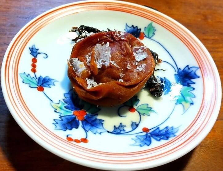 ヴィンテージ梅干しの塩の結晶を乗せてみました。