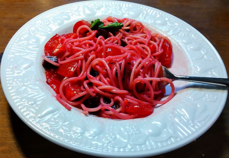 トマトとビーツの冷製パスタ