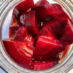 下処理したビーツはドレッシングに漬け込み、マリネにして冷蔵庫に保存しています。