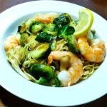海老、芽キャベツ、白舞茸の塩レモン焼きそば