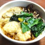 冬の定番、牡蛎と白子の天ぷらと黒舞茸の温かい蕎麦。