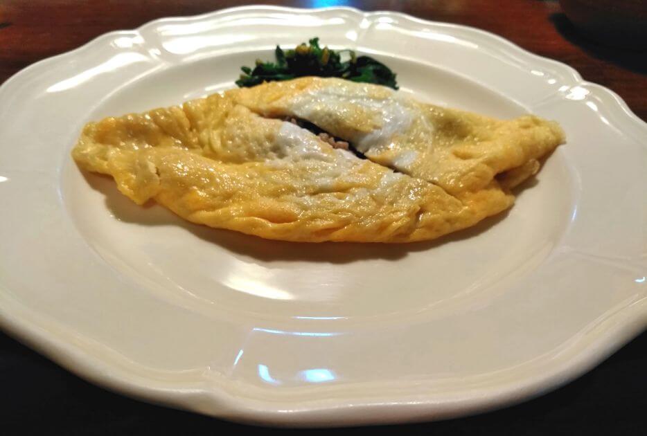 蕗の薹味噌入り肉そぼろのオムレツ。