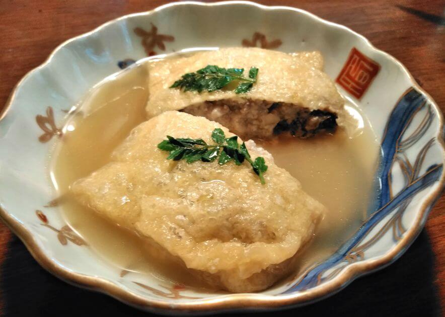 蕗の薹味噌入り肉そぼろ入り薄揚げの煮物