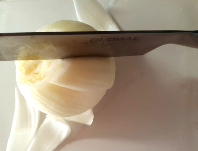 手も俎板も、全然汚ないし、残った玉葱をしまうのも簡単です。