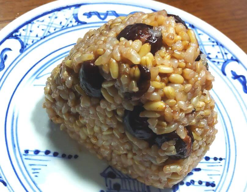 左は発芽燕麦と白いお米、右は発芽燕麦と発芽玄米の酵素玄米ご飯のおむすび。