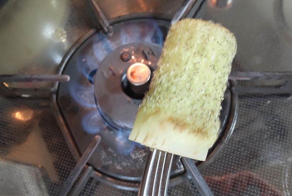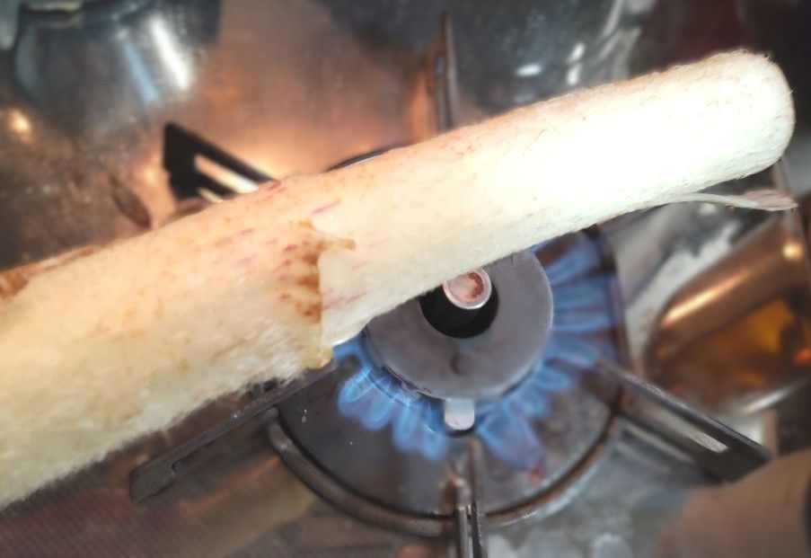 ケバケバを取るためにガスで炙るとツルツルになります。